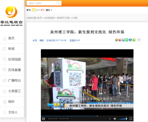 【晋江电视台】泉州理工学院:新生报到无纸化 绿色环保