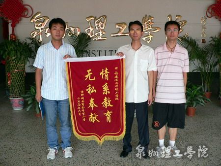 厦大研究生支教团成员专程将锦旗转交给泉州理工学院 一针一线都凝结西部人民真情的绣花鞋垫 每一封稚嫩笔迹都代表一颗纯洁无邪的心灵 ...