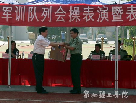 苏院长向部队首长赠送礼品 烈日下纹丝不动的观众 军容严整颁奖仪式整装待发跑步走会操现场鸟瞰向右看齐队列跑喊口令军训结束送别教官(张俊毅摄) ...