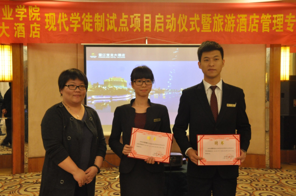 我校副董事长为酒店高管颁发聘书 合影 2015 年12月9日下午2时30分,泉理工学院、晋江宝龙大酒店 “现代学徒制”试点项目启动仪式暨酒店旅游管理专业介绍会在晋江宝龙大酒店召开。泉州理工学院副校长吴滨...