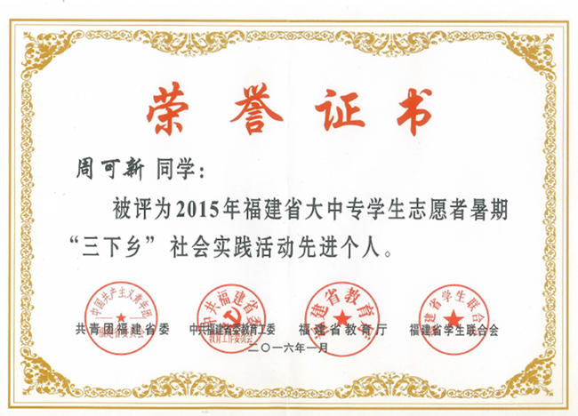 近日,“践行‘八字真经’ 投身‘四个全面’” 2015 福建省大中专学生志愿者暑期“三下乡”社会实践活动评选结果揭晓,我校“扬党员风采 促地方发展”晋江市交通运输系统暑期志愿服务团被评为“优...