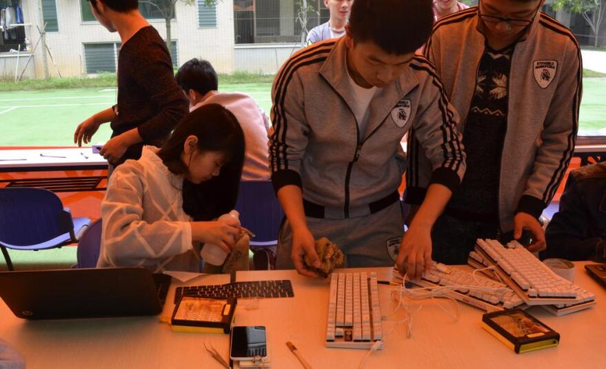 同学正在清洗电脑键盘 清洗电脑 3 月30日,由14机电团支部主办的校园电脑义诊活动,在宿舍区的网球场成功举办。此次活动作为14机电团支部本学期的团日活动,积极响应校团委的号召打造活力团支部,在团总...