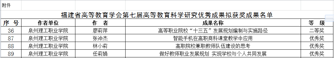根据福建省高等教育学会《关于开展第七届高等教育科学研究优秀成果评选表彰工作的通知》(闽高会[2016]3号)的精神,经福建省高等教育学会组织专家评审,共评出拟获奖论文219项,其中一等奖20项,二等奖40项,三等奖...