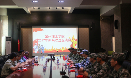 9月11日下午,泉州理工学院2017年新兵入伍欢送仪式暨新老兵座谈会在主楼第一会议室举行。学校党委书记林其天,学生处处长、人民武装部部长杨津平,退伍老兵、保卫科科长吴声标,武装部干事黄英文共同为今年即将奔赴军...