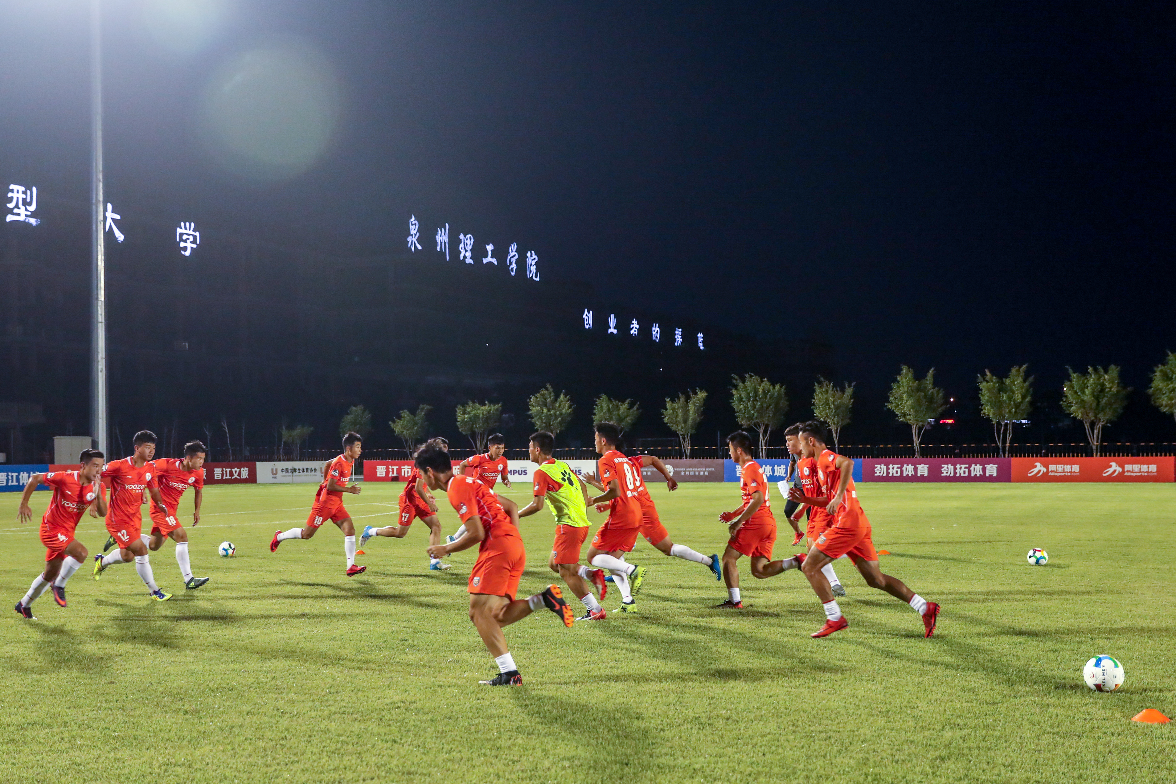 8月19日晚,在福建晋江举办的2018年亚洲大体联亚洲杯中国大学生足球选拔赛男子组比赛进入第二轮,东华大学队对阵中国人民大学队,最终东华大学4:2战胜中国人民大学。 东华大学男足身着橘黄色球服,中国人民...