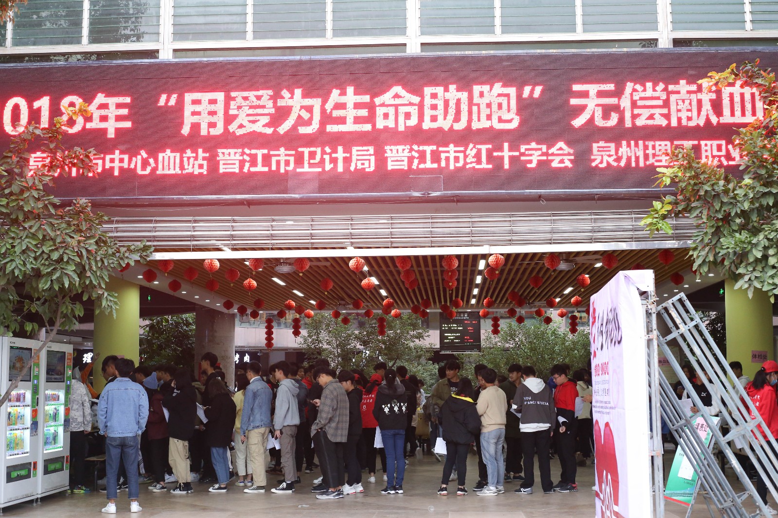 12月12日,我校联合泉州市中心血站、晋江市卫计局、晋江市红十字会在食堂一楼大厅开展“用爱为生命助跑”无偿献血活动。此次爱心献血活动吸引了广大师生的踊跃参与,掀起了一场无偿献血、无私奉献的爱心热潮。 活...