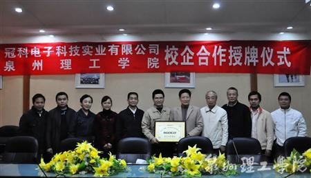 为满足社会对高技能人才的需求,进一步深化校企合作, 2011年3月23日下午3点半,我校与冠科(福建)电子科技实业有限公司在思恩楼一楼会议室举行校企合作授牌仪式。校长苏志明,教务处处长刘皿伟、学工处处长郭变玲...