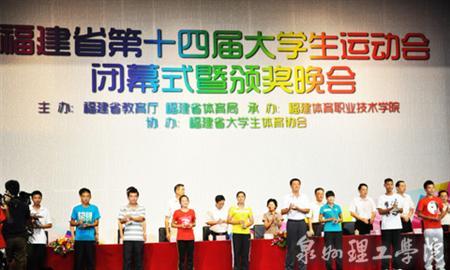 学生龚素治(前排右六)代表学校上台领奖 8月7日晚,历时2年的福建省第14届大学生运动会在福州圆满闭幕。泉州理工学院破2项省大运会纪录,拿4项第一,获大运会乙组团体总分第五名。 据了解...