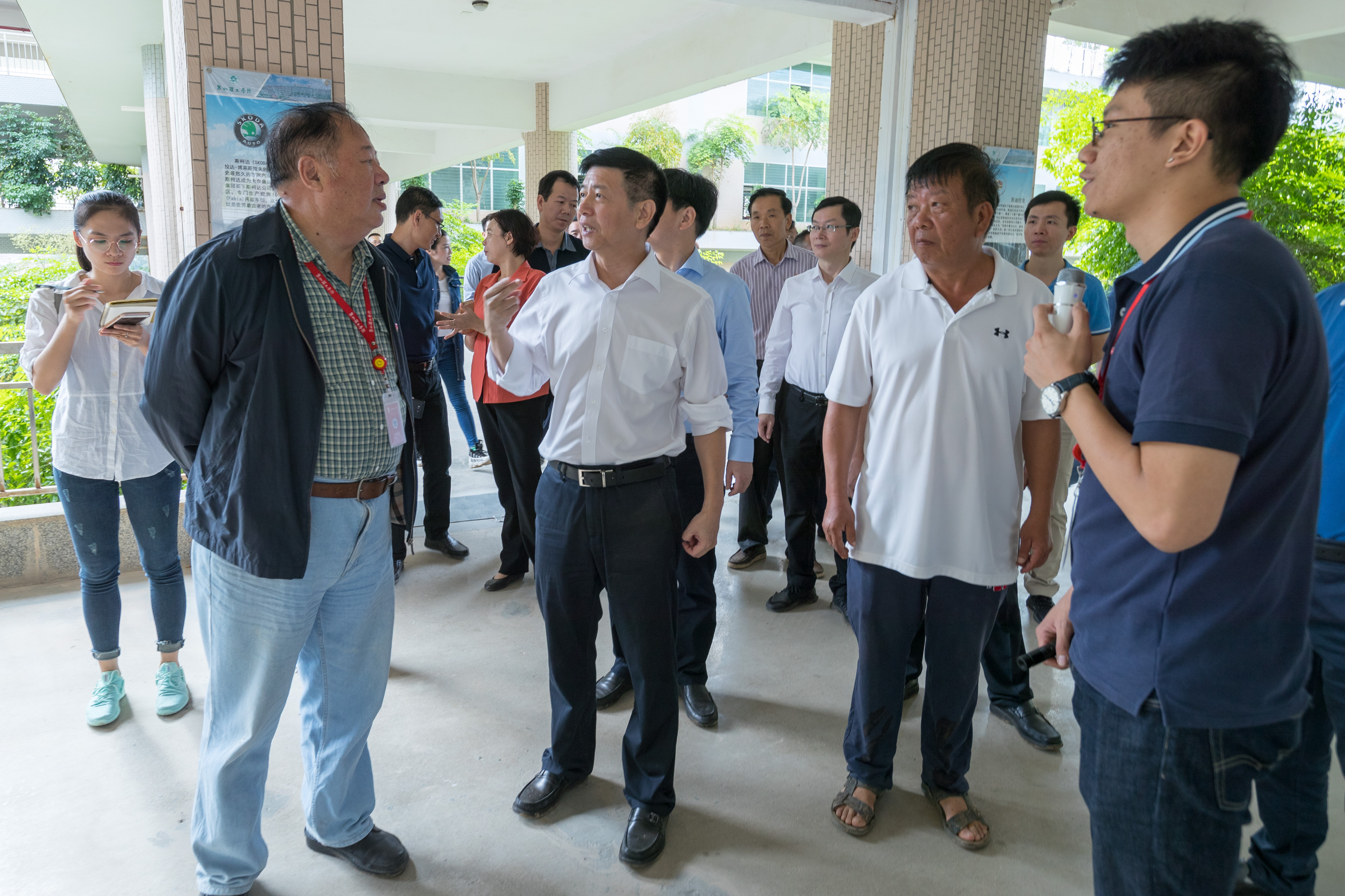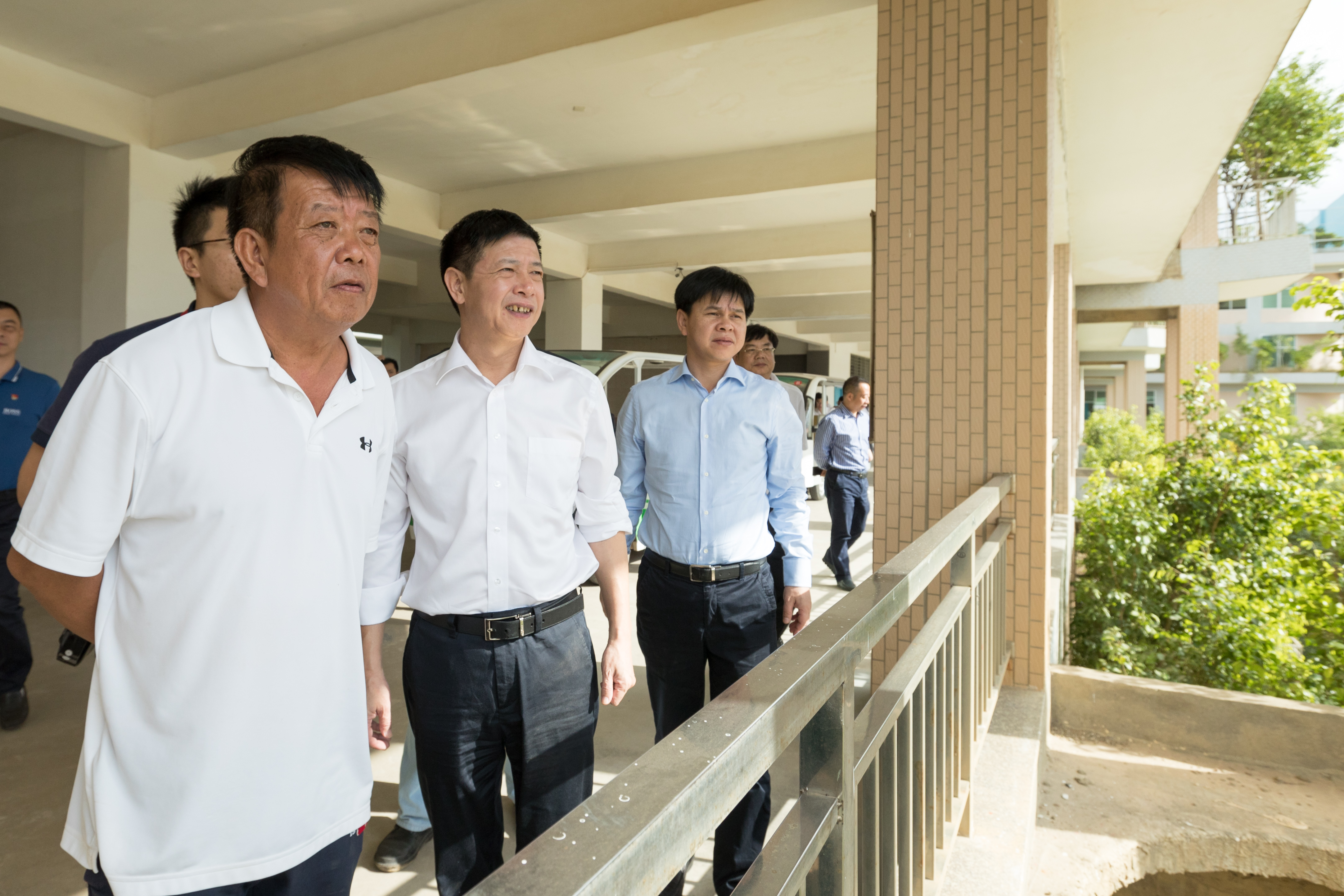 植树活动结束,市领导一行走进绿色教学大楼,实地考察了学校立体绿化建设情况。晋江市委书记刘文儒、市长张文贤高度赞扬了学校的生态校园建设成果,并对学校的发展现状给予高度肯定。同时,刘书记指出,学校是学生成长的精神家园,要坚持十九大报告中提出的“人与自然和谐共生”的原则,在现有的基础上做到好上加好,巩固生态成果,让学生在自然生态中健康成长,在绿色校园中提升生态文明建设意识。