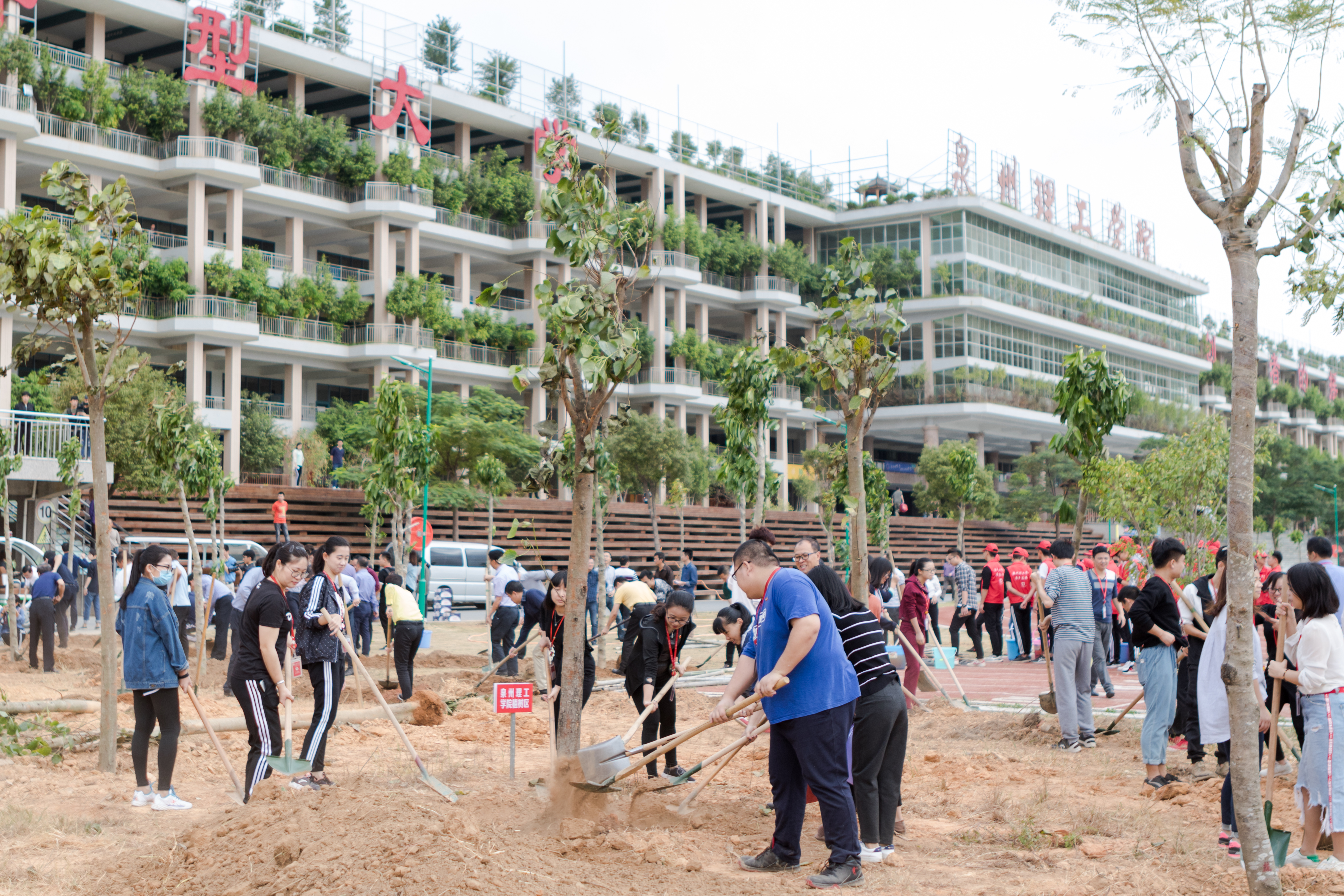 11月8日,晋江市2017年“全民动员,绿化晋江”推进月义务植树暨现场察看活动走进我校。晋江市领导刘文儒、张文贤、林仁达、陈晋永、郭鸿荣、张淑语、李志强、各镇(街道)、经济开发区主要领导一行莅临我校开展义务植树活动。