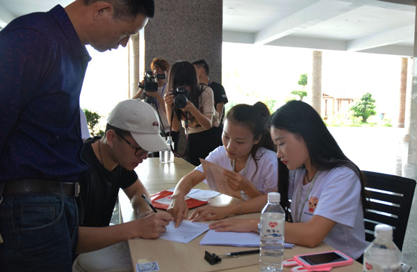 新生到校时,正在进行报到注册