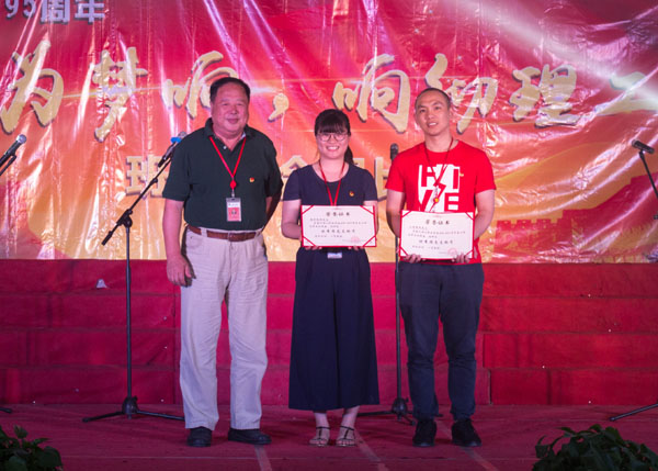 为了本次决赛,这些班级在历经近一个月的紧张排练下将以高超的唱功与昂扬向上的精神面貌面对接下来的比赛。首先,开场是由指导老师丁雯雯指挥校合唱团的成员带来了激情的《神圣的战争》,激昂高亢的歌声深深地感动在场老师与同学们的爱国之心。其中16油储1班给大家带来的《追梦赤子心》,高音更是让人震撼,“向前跑!”身为青年大学生就应该向前跑,向前冲!在比赛过程中,进行校内五四评优的表彰。由学工处处长杨津平老师为112名优秀团干251名优秀团员进行表彰,由庄文瑞副校长为各院系的14个优秀团支部进行了表彰。由林其天书记为共青团校委员会副书记蒋滨滨老师、商学院团总支书记罗永珍老师及工学院团总支书记黄胤聪老师优秀团务工作者进行表彰。最后,由臧树良校长为工学院和商学院两个优秀团总支部进行表彰。