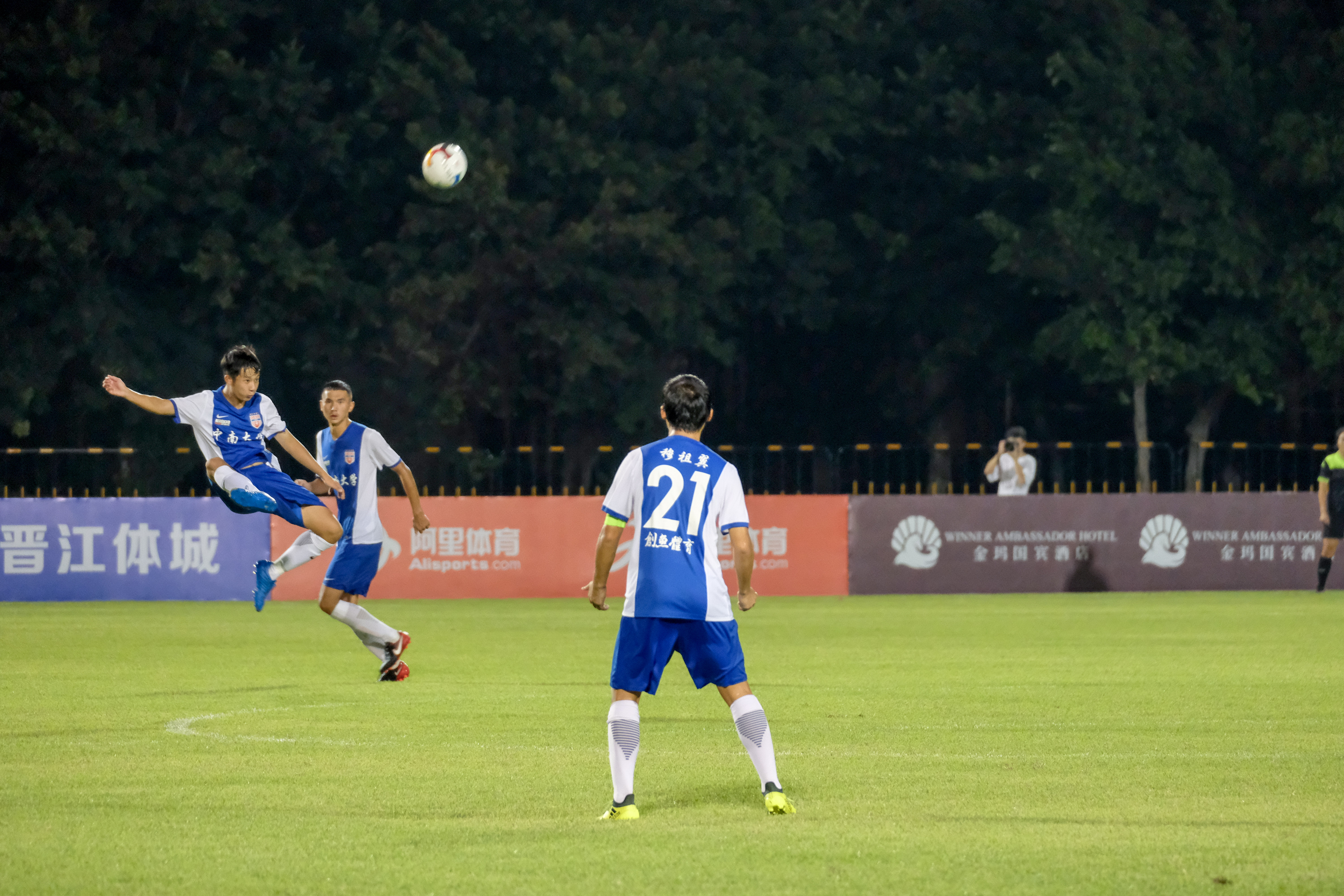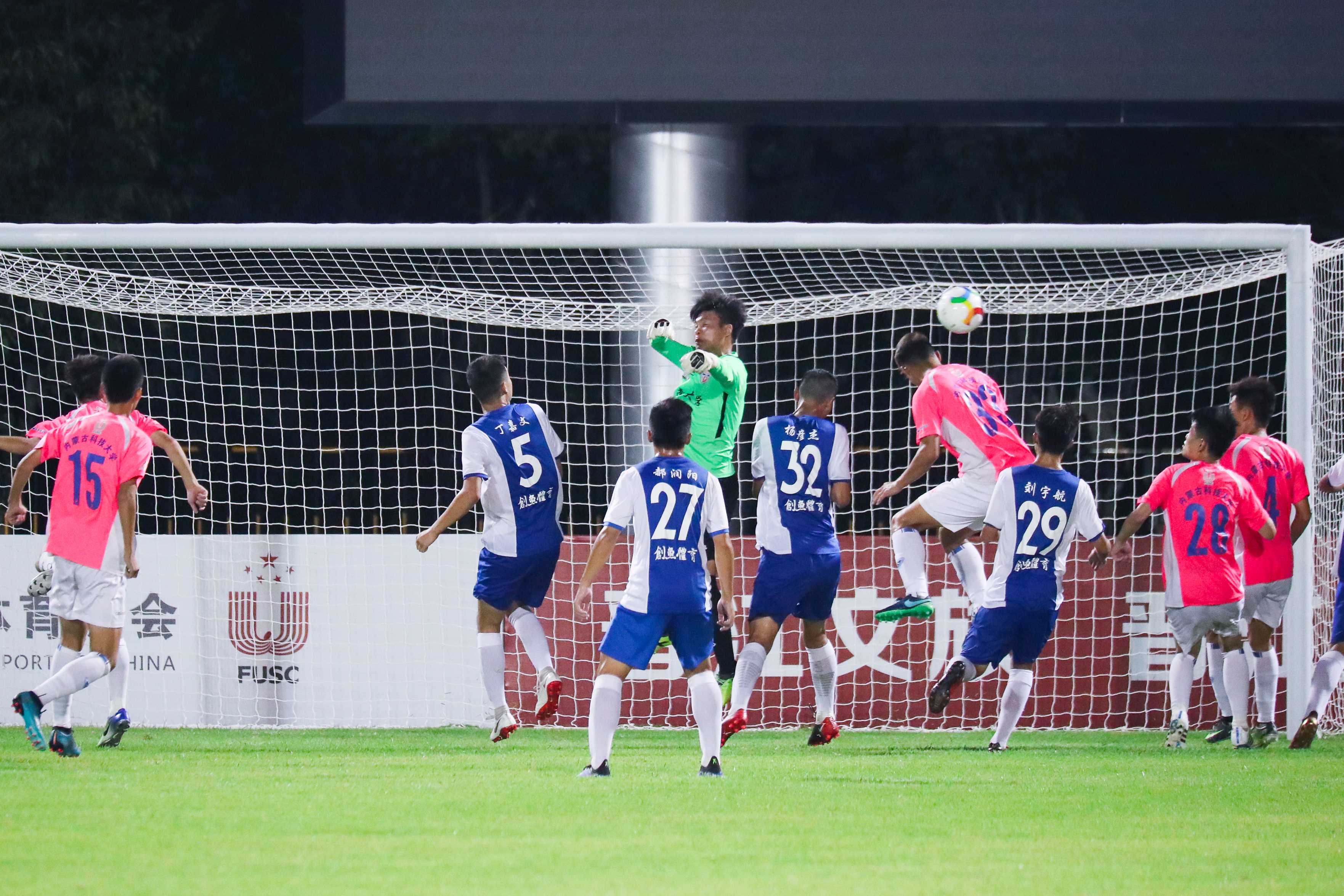 文兰瑾不过,内科大旋即作出回应。还未等对方从进球的喜悦中回过神来,第35分钟,内科大开角球,皮球穿过对方防守球员,直达4号队员景致优的脚边,就在球门区外一步,景致优面对球门一个直射,将比分扳平。
