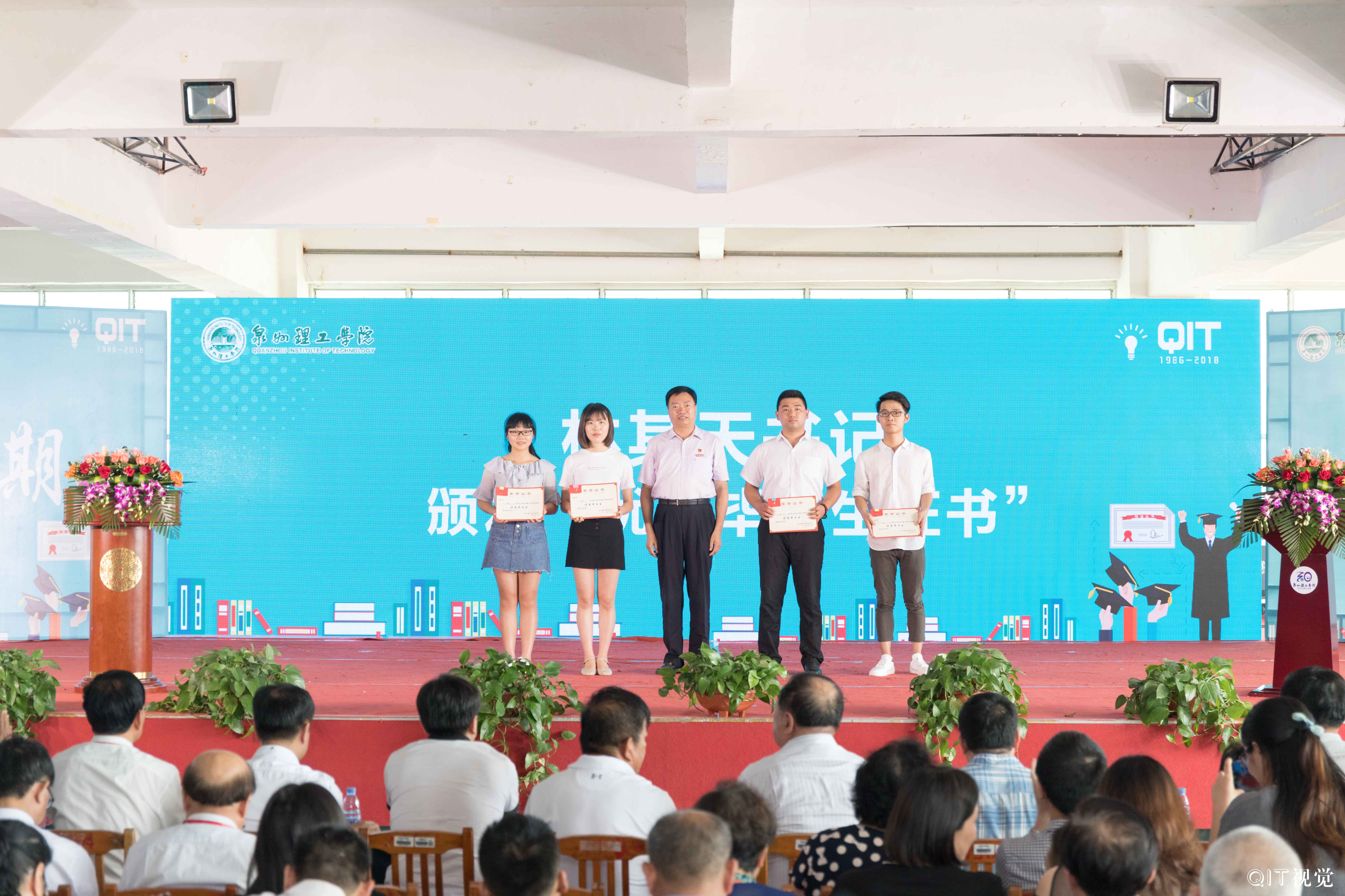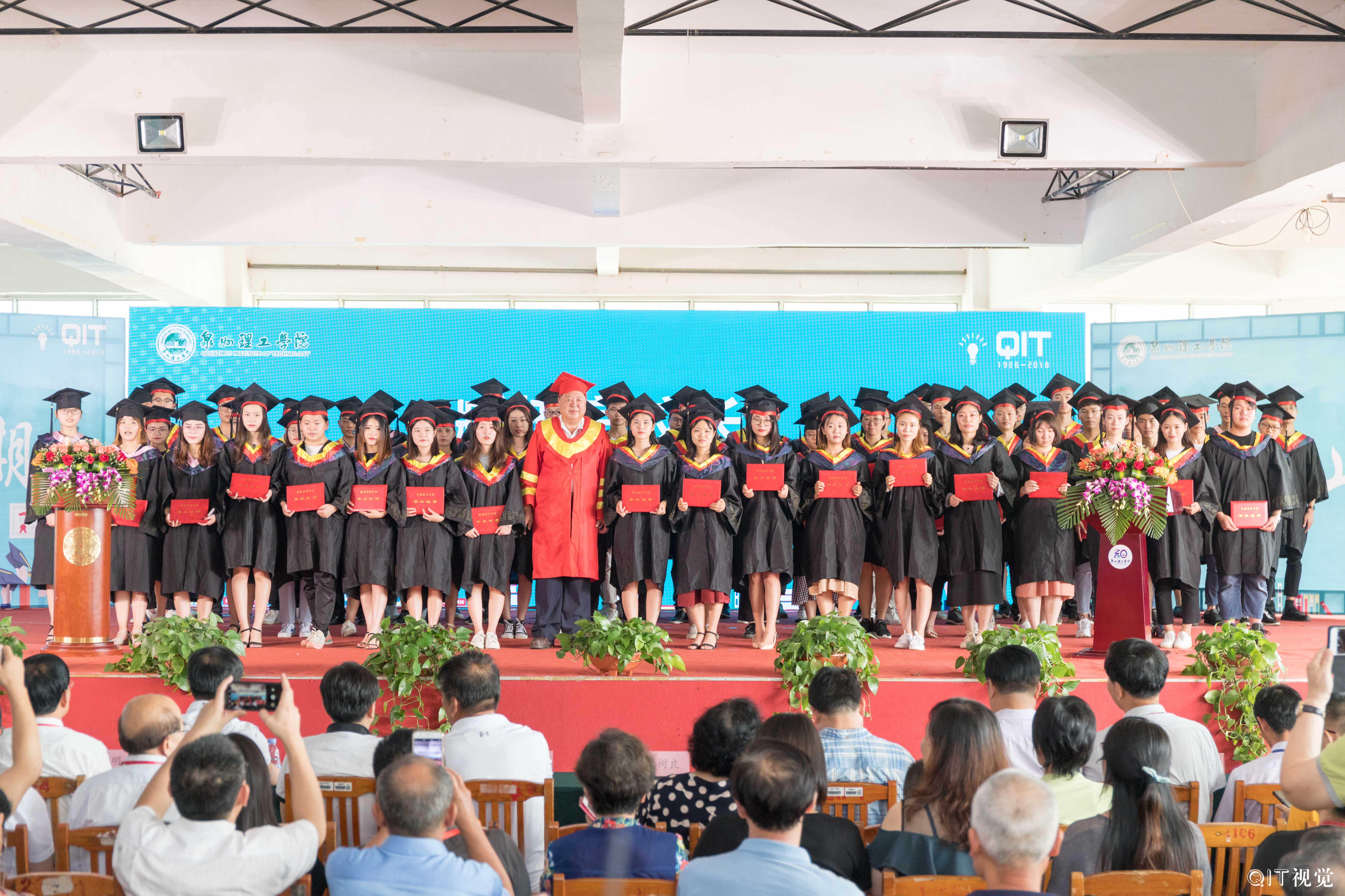 9日下午,泉州理工在西教小礼堂隆重举行2018毕业典礼,董事长吴金营、校长臧树良、书记林其天、名誉校长苏志明、副校长吴滨如、副校长于雷、副校长庄文端等校领导以及各院系、部门相关负责人、教职工、2018届全体毕业生参加典礼。出席典礼的嘉宾有泉州市高教办主任陈志刚、内坑镇政府副镇长张辉永、内坑派出所副所长张谋泽、创业者协会代表吕谊阳、杨江鸿、陈连套、校友代表黄腾蛟等人。典礼由校长助理郭霏霏主持。