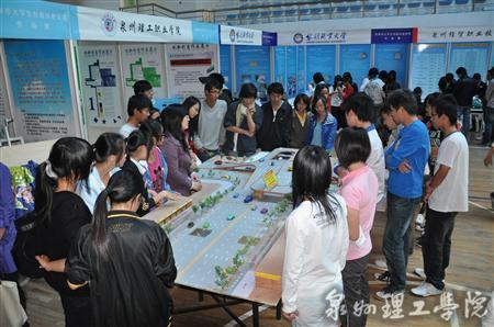 我校参展作品前围满了参观学生