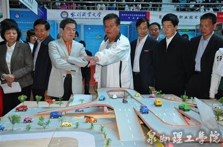 表彰仪式后,李建国市长一行领导来到作品展示区参观各高校参赛获奖作品。来到我校作品展示区时,李建国市长饶有兴致地参观由吴金营董事长指导的参赛作品《畅通工程》模型。吴金营董事长亲自为市长讲解此作品的设计理念和创新亮点。