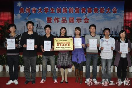 2个一等奖,2个二等奖,3个三等奖,6个鼓励奖,在参赛的众多高校中名列前茅,并被授予“优秀组织奖”。团委书记林秋琴和学生代表张艺彬分别上台领奖。