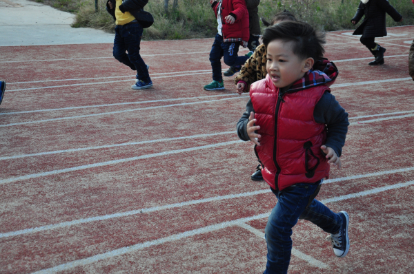 跑步后,小朋友们在操场上做游戏