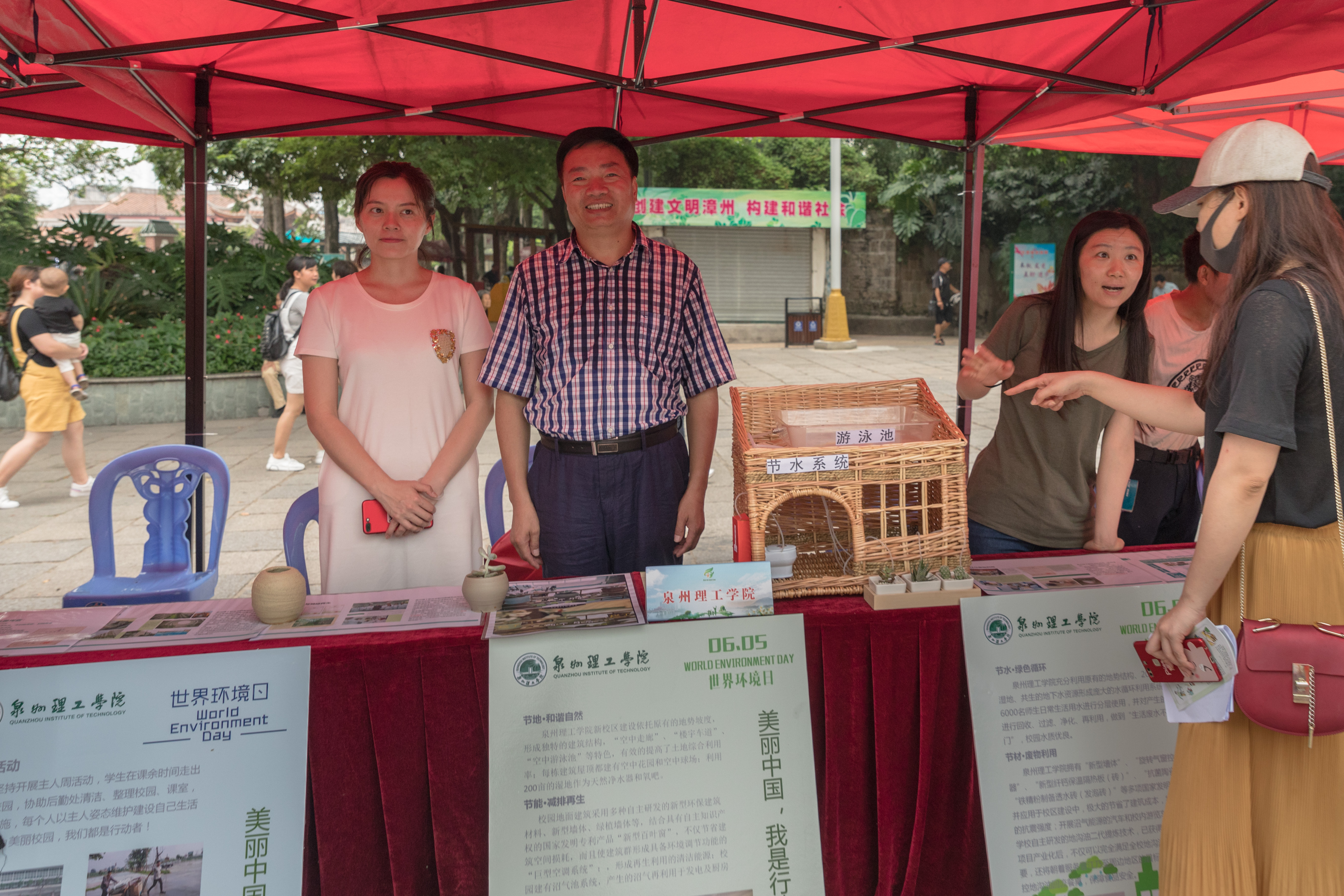 活动现场开展了环保主题视频、展板宣传及环保书画摄影展。我校受邀参加,展出的节水系统和抗菌陶瓷等作品吸引了很多前来参观的群众,向大众传递了绿色生活、废物利用的环保理念。