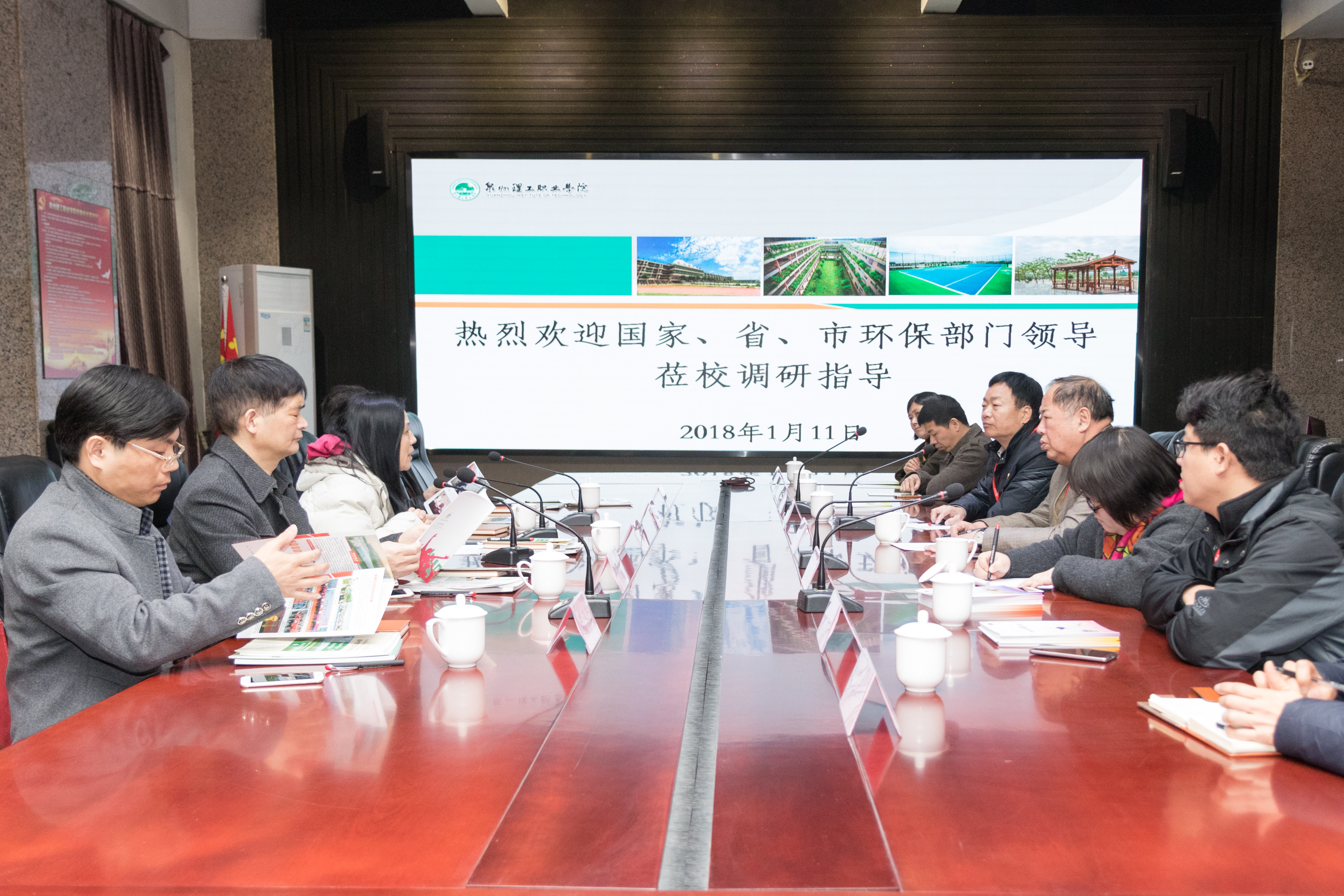 1月11日下午,国家环保部宣教中心基地室艺术中心主任李原原率2018中国少年儿童生态教育示范课进校园活动(福建组)莅临我校开展实地调研,福建省环保宣教中心副主任黄春林、福建省环保宣教中心环境教育科科长郑循如、泉州市环保局副局长郑天助、泉州市环境保护信息宣传教育中心主任杨伟红等陪同调研。校长臧树良、党委书记林其天、副校长吴滨如、校长助理郭霏霏、蔡金佩等热情接待。