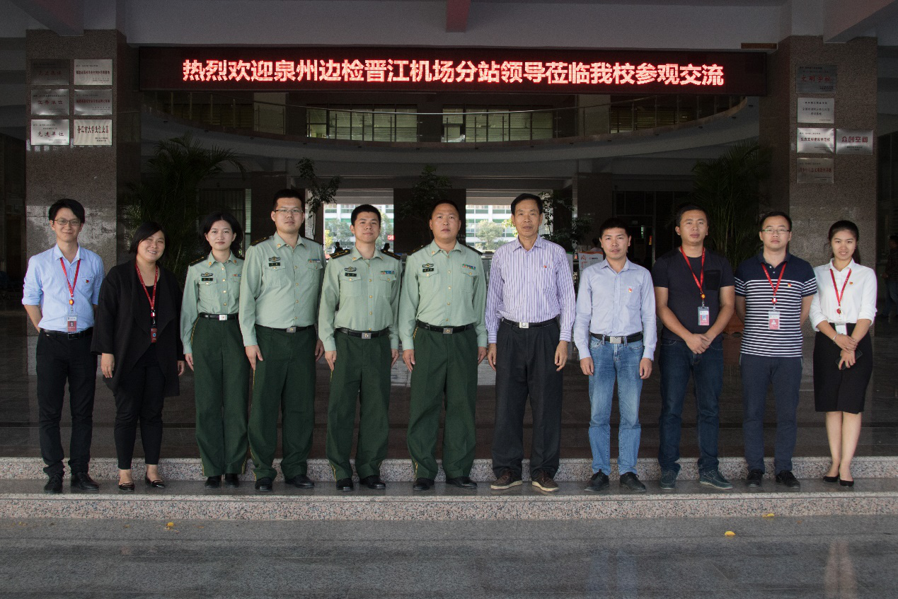 11月9日下午,泉州理工学院与泉州边检晋江机场分站共建签约、授牌仪式在第一会议室隆重举行。泉州边检晋江机场分站副站长管文福、分站一科教员王琦、分站一科科长李鑫、检查员代表肖琳,泉州理工学院副校长庄文瑞老师,泉州理工学院校长助理,招生就业处处长、校团委书记蔡金佩老师,学工处副处长黄镇红、团委副书记蒋滨滨老师,建筑设计系党总支书记杨永华、建筑设计系第二党支部书记王秋玲、就业指导中心副主任黄世强以及主要学生干部出席本次活动。会议由黄世强老师主持。