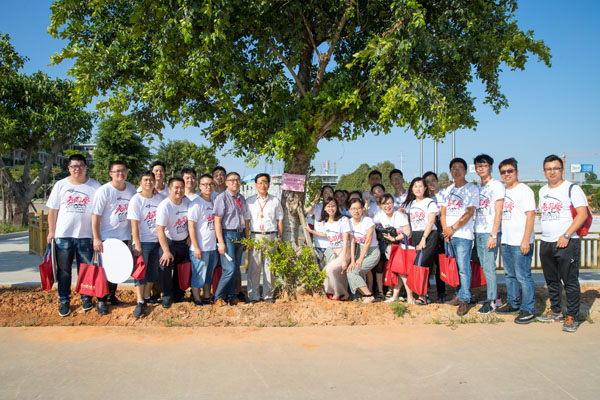 这天,毕业10年的07届学子也相约到母校,认捐树木在母校植下一片青春绿意