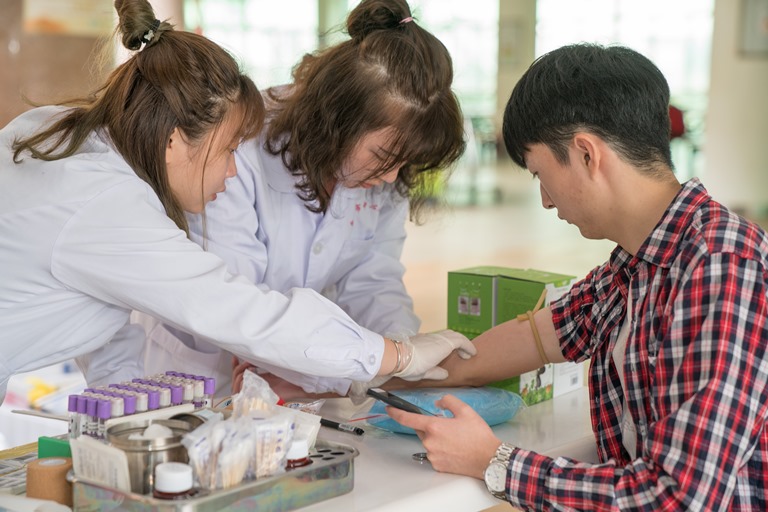 同学们正在献血