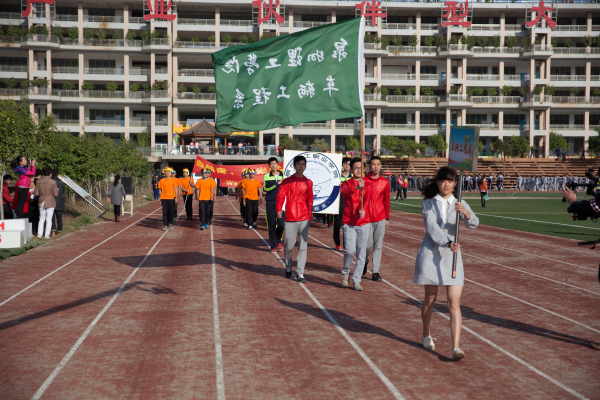 在学校鼓队的带领下,各院(系)以班级为方阵相继入场接受领导老师的检阅,此次校运会开幕式共有