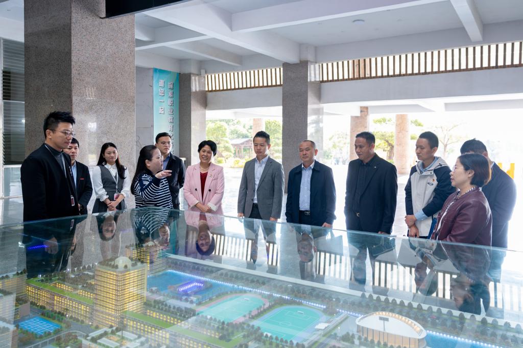 张阿芬一行先后参观了我校生态校园沙盘、校史馆、艺术设计展厅、直播基地、数智产教融合展厅、“一站式”学生社区、新能源汽车产业学院等,吴滨如向其介绍我校办学成果及产教融合实践举措。