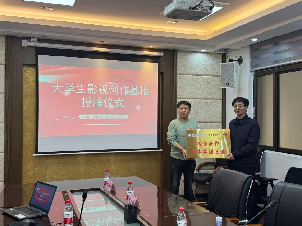 授牌仪式后,泉州职业技术大学与西滨镇共同开展了大学生影视创作基地研讨会。双方从建立大学生影视创作基地的意义和未来合作等内容为切入点,针对发展规划、合作方向、学生实习、创作项目合作、文化活动举办等方面内容进行深入研讨。