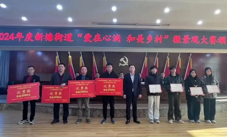 沿着新塘街道的乡间小道前行,以华侨文化、和谐邻里、军民团结、清风正气、乡愁记忆和福文化等为特色的主题微景观,移步换景,妙趣横生,凝练着当地人祖辈的精神赓续,彰显着乡村的文明底蕴,整体服务和建设成效得到了地方领导和当地民众的一致点赞。1月6日,在新塘街道“爱在心淌 和美乡村”乡村微景观大赛的颁奖活动中,参与学生分别获评一等奖1项、二等奖2项、三等奖3项和优秀奖4项。