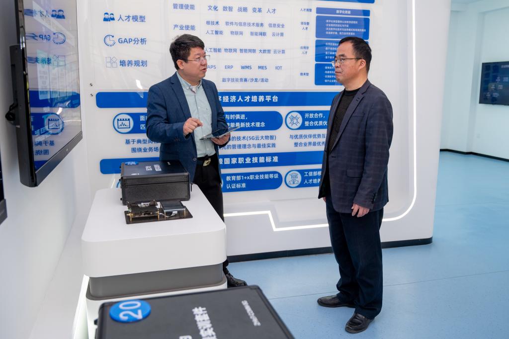 李联益一行先后参观了我校生态校园沙盘、校史馆、艺术设计展厅、直播基地、数智产教融合展厅、众创空间、新能源汽车产业学院等,对我校在产教融合建设及国家级晋江市域产教联合体方面取得的成果表示肯定。