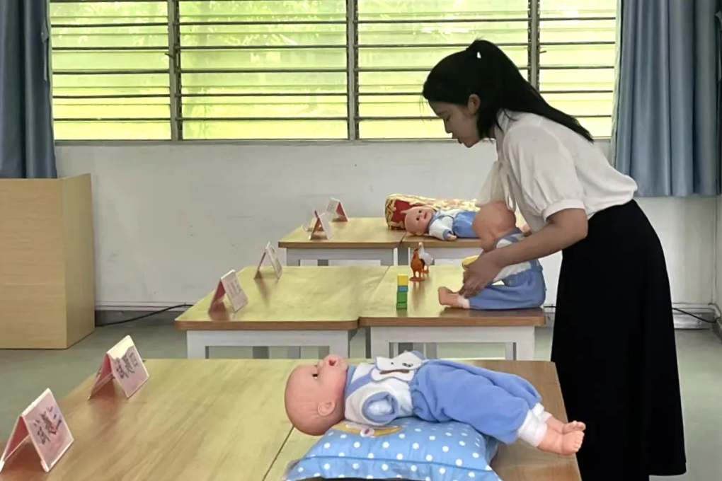 教育学院组织育婴员(高级)职业技能等级证书考试,以《学前卫生与保障》课程代替理论考核,通过生活照料、保健护理、教育实施等三大模块实操考核,提升学生实操能力,为婴幼儿照护及早教领域输送人才。