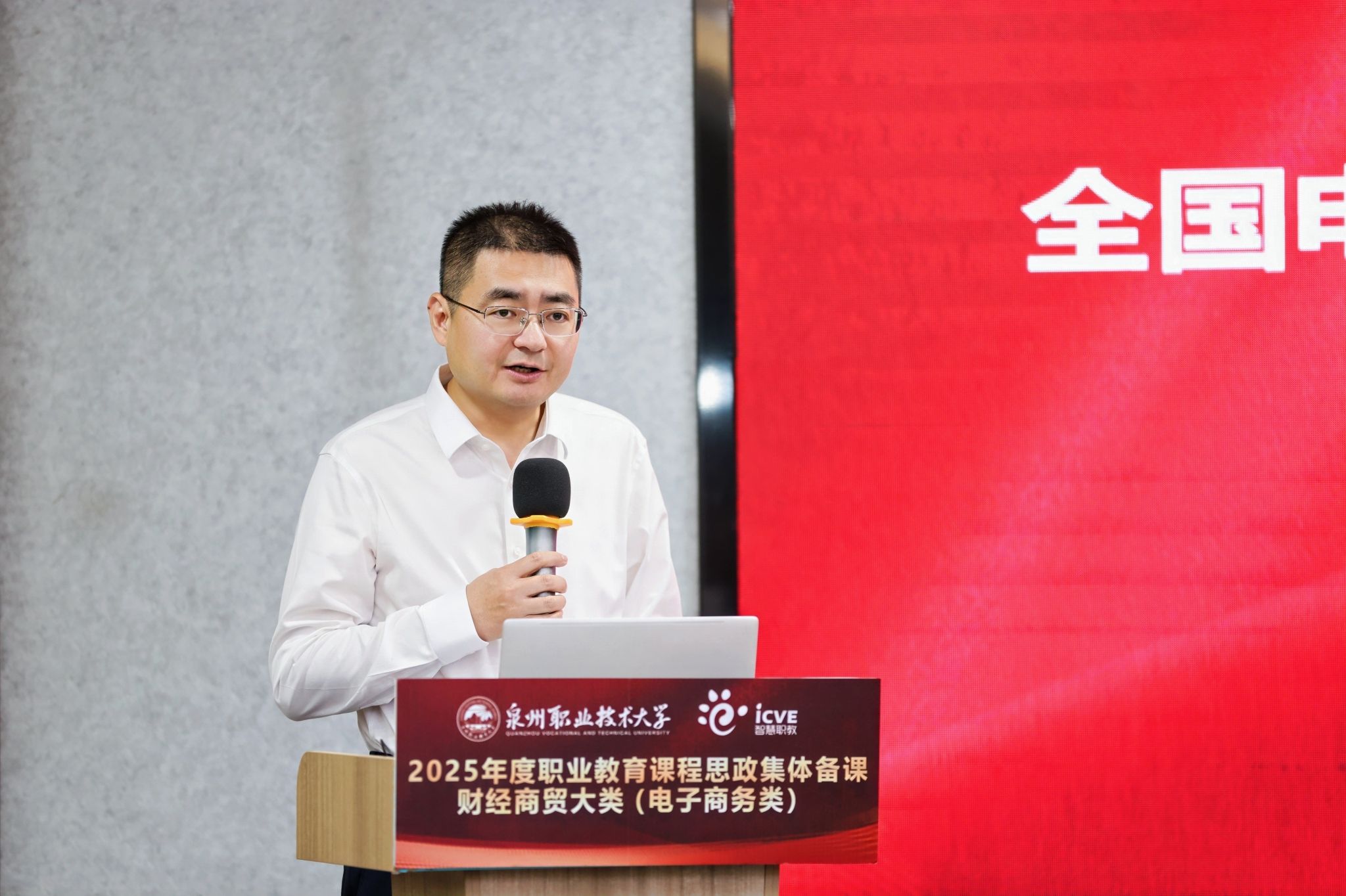 以“立德守正 融合赋能”为主题的2025年首场电子商务类专业课程思政集体备课活动,于10月20日在泉州晋江成功举办。本次活动由全国电子商务职业教育教学指导委员会(下称“全国电商行指委”)、全国供销合作职业教育教学指导委员会(下称“全国供销行指委”)联合主办,泉州职业技术大学承办。全国电商行指委常务副主任陆春阳,全国供销行指委副主任劳赐铭,泉州职业技术大学校长吴滨如出席活动并致辞。泉州职业技术大学副校长张建军主持活动。
