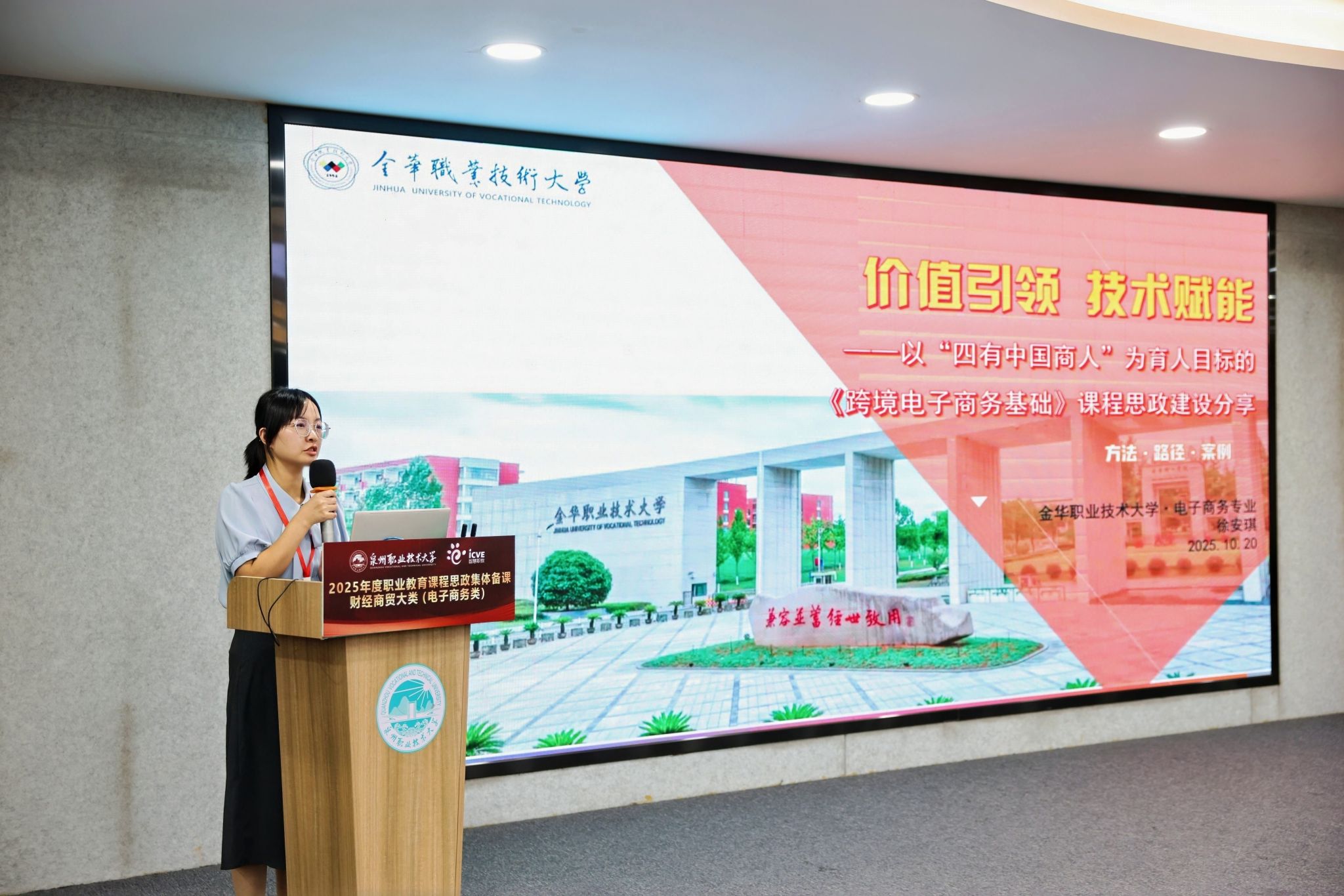她介绍,泉州职业技术大学秉承着“爱拼敢赢、敢为人先”的晋江精神,传承弘扬“晋江经验”,深耕职业教育服务于区域经济发展的“晋江模式”,逐步形成较为鲜明的育人特色,探索出基于“产业伙伴型大学”和国家级晋江市域产教联合体双轮驱动的职业本科办学模式,今年电子商务专业群成功入选第二期国家“双高计划”建设名单,将以此次活动为契机,携手兄弟院校共建职业本科电商专业群标准,紧跟“晋品出海”战略,提升职教出海适配度与影响力,让产业实践与思政教育深度融合。