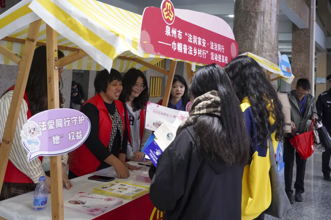 此次活动,泉州市“法润家安·法治同行—巾帼普法乡村行”活动的妇联系统、公安系统、法院系统巾帼普法志愿服务队还在学校同步开展了反家暴、妇女维权、平安三率、反诈、禁毒、网络安全、人才政策宣传及非遗剪纸体验活动。