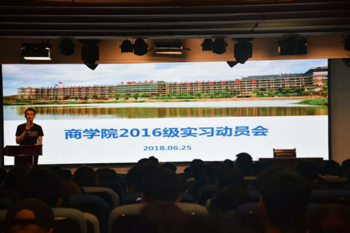 商学院翁长武院长在实习动员大会上作重要讲话