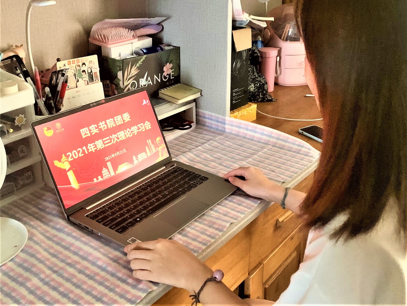 为坚持用习近平新时代中国特色社会主义思想武装头脑,进一步增强“四个意识”,坚定“四个自信”,做到“两个维护”,2021年9月22日下午,四实书院团委组织召开2021年第3次理论学习会,书院团委负责人陈萧,书院团委、学生会全体成员及2020级各班级团支部书记参加此次学习会,会议由学生会执行主席陈颖主持。